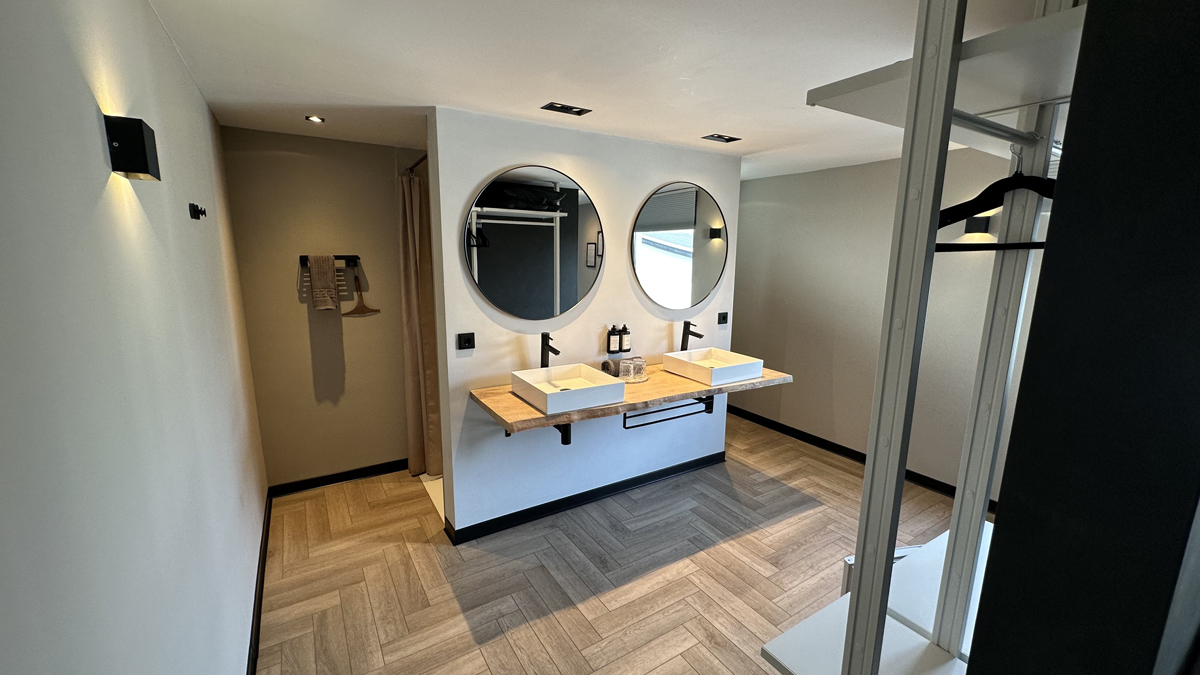 De kamers verschillen in grootte en zijn respectievelijk 22 m², 24 m² en 28 m². Alle kamers zijn modern ingericht en voorzien van een privé ensuite badkamer, welke volledig open is qua structuur en direct grenst aan het slaapgedeelte. De badkamers beschikken over een ruime inloopdouche van 120×90 cm met stortdouche. Zowel de douche als het toilet zijn niet afsluitbaar met een deur. Alle kamers zijn uitgerust met basis- en luxevoorzieningen.
