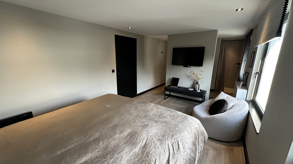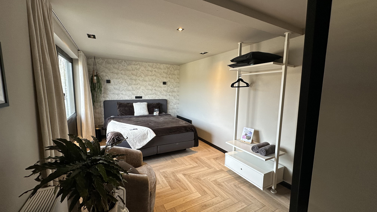 Ons hotelconcept is gebaseerd op zelfstandige toegang en privacy. Er is géén bemande receptie. Gasten checken in via een smartlock bij de ingang op de begane grond, die apart is van de privéwoning. Na het inchecken bereikt u via de trap de eerste etage, waar zich drie stijlvolle en comfortabele tweepersoonskamers bevinden. Let op: trappen lopen is onvermijdelijk. De kamers zijn centraal gelegen rondom enkele gezamenlijke ruimtes. Zo is er een gezamenlijke woonkamer met pelletkachel, waar gasten samen kunnen komen. Tevens is er een koffiecorner, een kleine shop met honesty bar en een klein keukentje. Daarmee is de accommodatie ook ideaal als groepsverblijf te boeken.